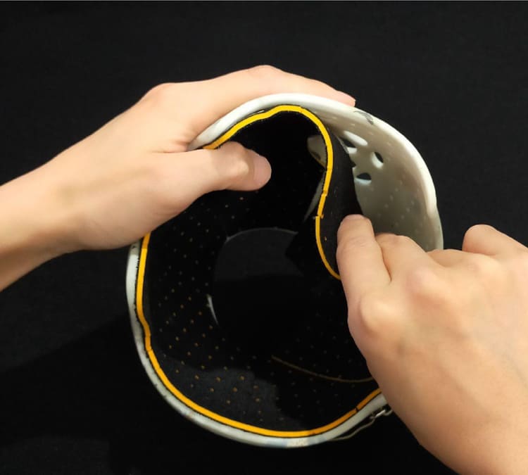 クッションが簡単に着脱でき、ヘルメットは⽔洗い、クッションは洗濯機でネット使用の洗浄が可能で、清潔に保つことができます。